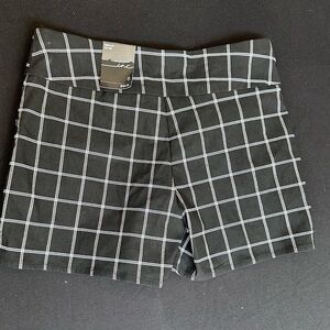 These high waist shorts from INC International Concepts feature a striking black and white checkered pattern, offering a modern and polished look. The structured design and crisp woven fabric make them ideal for stylish casual wear. With a clean-lined waistband, these shorts provide a flattering fit and a contemporary geometric aesthetic.