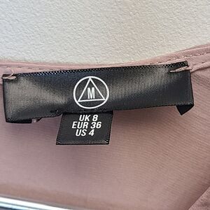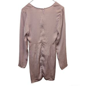 Missguided Pink Plunge Neck Silky Long Sleeve Panelled Thigh Slit Dress 4. Color is a light dusty pink. Plunge neckline. Slit on thigh. 100% polyester.