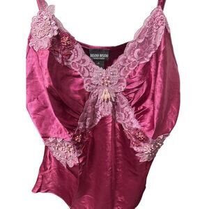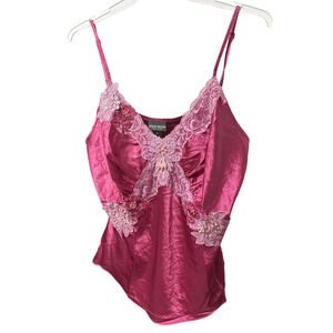 Bisou Bisou Vintage Camisole Fairy Mermaidcore Satin Lace Beaded Top Y2K - Size 10