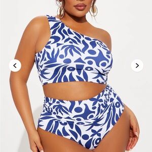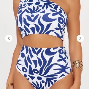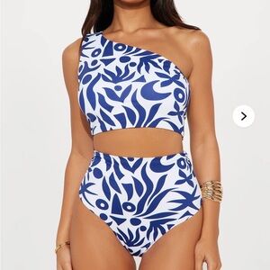 Blue and White One-Shoulder 2 Pc Sz M Swimsuit nwt