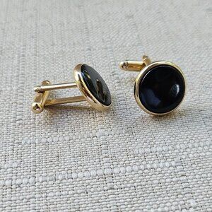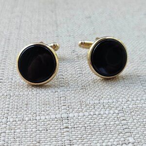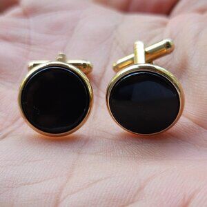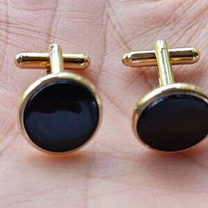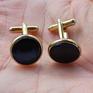 Men Shirt Cuff Links Gold Tone Fashion Men Jewelry Black Centered Cufflinks