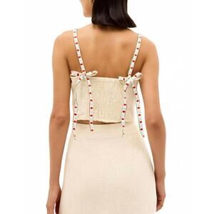 Thanks for checking out our fabulous Posh closet!! All of our items are new with tags! Never worn or used <3 - Composition: 100% Linen - Description: Pair this crop top with your favorite high-waisted jeans or maxi skirt.This patterned crop top features vibrant geometric embroidery in paprika, emerald, and sky blue. With a smocked back, adjustable embroidered shoulder ties, and a cropped fit, it offers a flirty yet refined silhouette that pairs perfectly with the matching Chandler skirt. Crafted from 100% linen with embroidery detail and fully lined for a polished finish. - Because all of our merchandise is brand new and often times in original packaging, extra photos or measurements cannot be provided - Heads-up that color shades may vary due to the photo lighting - We always put the color name in the title - All items are final sale - Thank you so much for shopping! We appreciate you :)