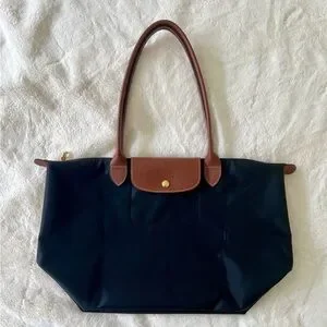 Longchamp Le Pliage Original L Black and Brown Tote Bag