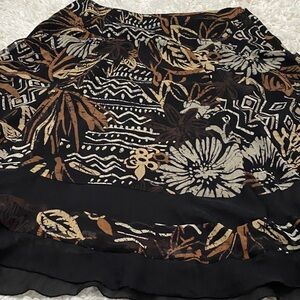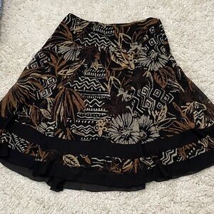 Elevate your wardrobe with this stylish floral patterned women’s skirt size XL 14 by East 5th . Featuring a blend of black cream and brown tones, it's perfect for any occasion.