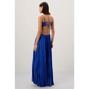 Delfi Collective Blue Satin Pleated Maxi Dress Slip, Size M Gown Retails $499