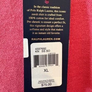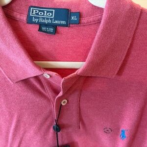 Polo by Ralph Lauren Men's Polo Shirt. 100% cotton, ideal for comfort. Pre-shrunk. Design offers a softness and style that makes it an instant old favorite. Reddish-pink color.