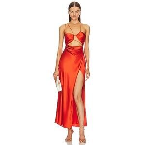 THE SEI Poppy Orange Asymmetric Cut Out Bodice High Waist Wrap Skirt Front Slit Dress Size 8