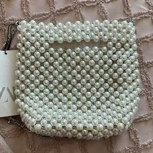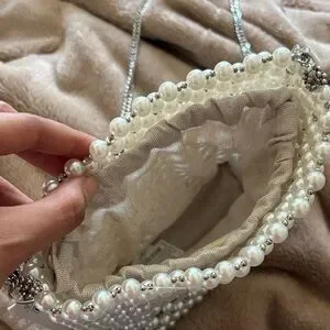 Chic shoulder bag adorned with elegant pearls. Features a stylish silver chain. Perfect for elevating any outfit.