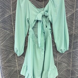 Step out in style with this elegant mint green off-shoulder dress. Perfect for any occasion, this dress features a chic tie-back design and flowing silhouette. Embrace comfort and fashion effortlessly.