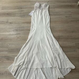New AZAZIE SAFFRON Diamond White Champagne Mermaid Sweetheart Sequin Crepe Dress