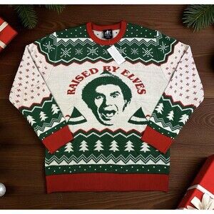 Elf Movie Ugly Christmas Sweater Size Large Will Ferrel Santa Buddy Raised By Elves