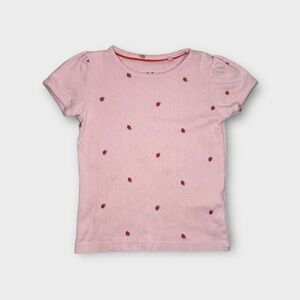 Mini Boden Strawberry Pattern Pink Pointelle Top