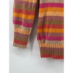LIZ CLAIBORNE Women's Pink-Orange Striped Knit Button Mock-Neck Long Sleeve Sweater SZ M