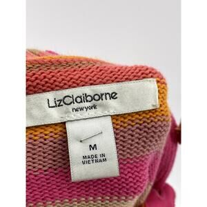 LIZ CLAIBORNE Women's Pink-Orange Striped Knit Button Mock-Neck Sweater SZ M