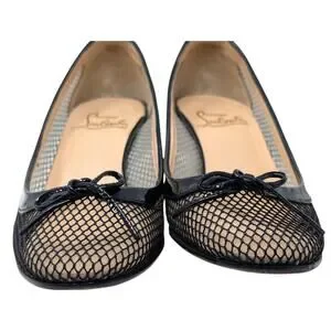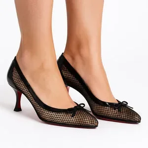 Christian Louboutin Marcia Rete Black Mesh Bow Heels Size 37
