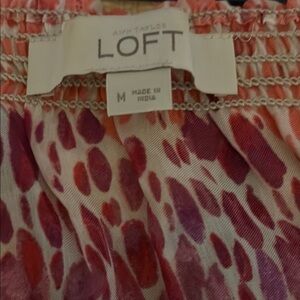Elevate your wardrobe with this stunning LOFT blouse, featuring a vibrant blend of pink and orange hues. Crafted with attention to detail, this top offers a chic and stylish look perfect for any occasion. The lightweight fabric ensures comfort, while the elegant design adds a touch of sophistication to your ensemble.