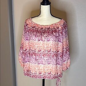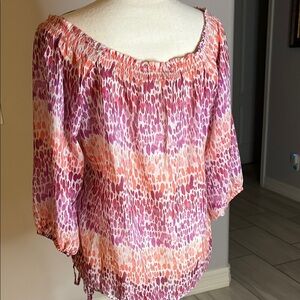 LOFT Women's Pink and Orange Smovhed 3/4 Sleeve Blouse Vibrant and Chic Size Med