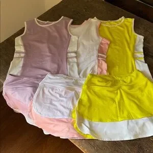 3 tennis outfits 5-6y poly skirts have shirts will ball pockets zipper in back πΎπ©·ππ