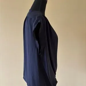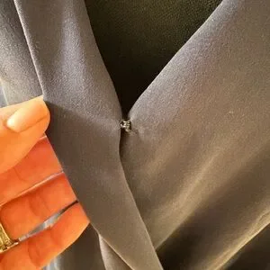 Chic draped design with a deep V-neck. Sleeveless style for versatile wear. Perfect for elevating any outfit. Hook closure at front.