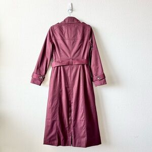 London Fog Single Breasted Button Front Maxi Burgundy Trench Coat w/ Belt Sz XXS