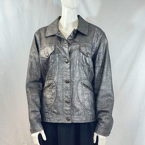 Simmer and shine in this lightweight dark silver/pewter/gunmetal on black metallic jacket