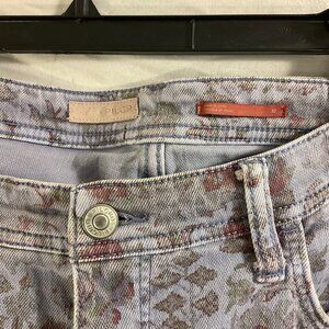 Wear these stylish Pilcro jeans proudly. All over floral design on light denim wash. Front button stamped with Pilcro logo, with Pilcro tag on back pocket. These jeans have been broken in and are very soft and comfortable.
