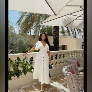 This elegant white dress features a classic button-down design, perfect for any occasion. Its sleek silhouette and timeless style make it a must-have in your wardrobe.