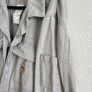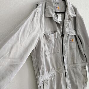 Carhartt FR Men 48 Tall Gray Coveralls Jumpsuit Thrashed Hole Stains Pocket Work