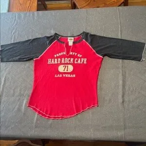 Vintage Hard Rock Cafe Women’s Red/Gray 3/4” Sleeve Tee