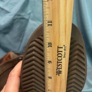 These Kodiak waterproof boots are in pristine condition. Though the pics make them look a little orangey, they are a beautiful camel brown as shown in the two images in natural lighting. They are a little wider than 3.5 inches for the width and just under 11 inches in length.