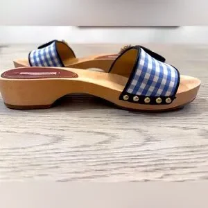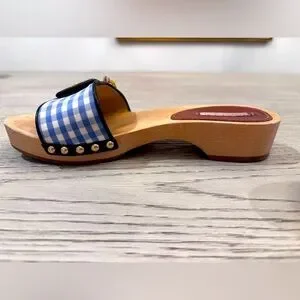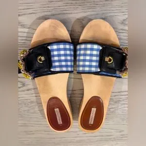 Fabrizio Viti Blue Gingham Wooden Sandal Size 7