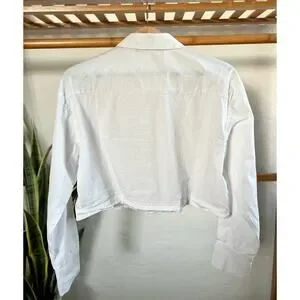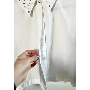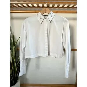 Zara Cropped White Embellished Collar Button Front Top