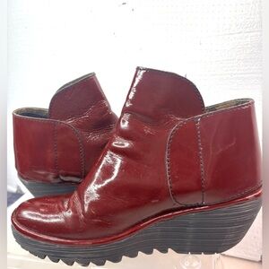 Stylish maroon red ankle boots by Fly London. Sleek design with a bold look. Perfect for any occasion.