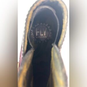 Fly London 10 Fly Wrap Over Chunky Platform Chelsea Style Ankle Boots Burgundy