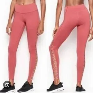 Victoria's Secret Coral High-Waisted Leggings Criss Cross Open Leg Size Large