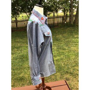 Vintage Sears Embroidered Western Shirt M Denim Floral Design Long Sleeve