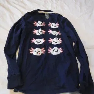 Instant Message Axolotl Emotion Blue Long Sleeve Girls Shirt Size Medium