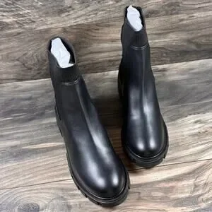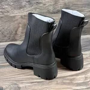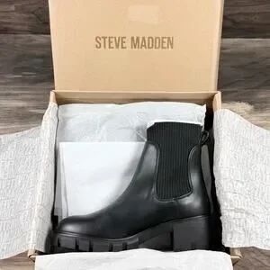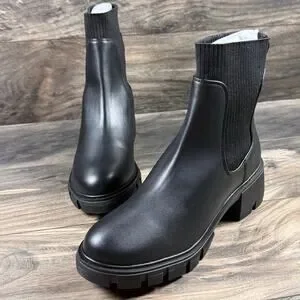 NIB Steve Madden 9.5M Hutch Stretch Lug Sole Chelsea Boots Black Faux Leather
