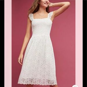 Maeve Anastasi Smocked White Lace Eyelet Dress Medium