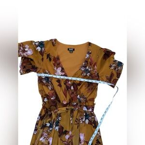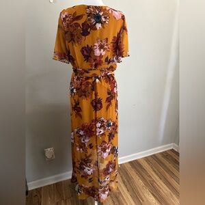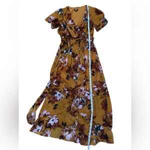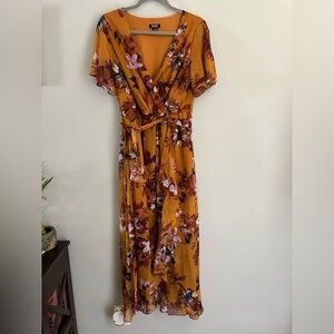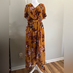 SLNY High-Low Short Sleeve Floral Maxi Dress Mustard Color Size 6