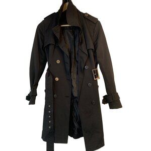 New York & Company Black Womens Trench Coat Belted Double Breast Medium RB10381