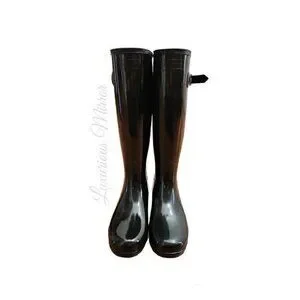 Hunter Womens Tall Gloss Rain Boots 6 Black Rubber Mid Calf Block Buckle New