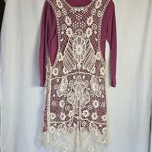 Umgee Ivory Crochet Open Vest/ Duster In Size Large
