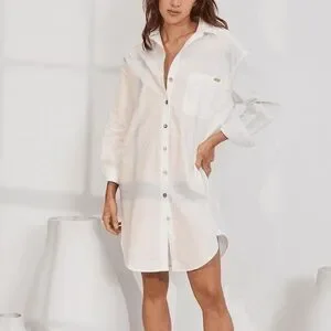 Lunya - Airy Cotton Sleep Shirt Dress - Sincere White - Size Large