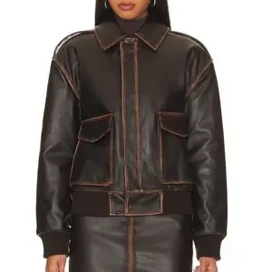 L’Academie - Bo Faux Leather Jacket in Brown, S