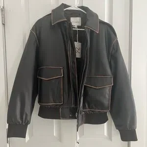 L’Academie - Bo Faux Leather Jacket in Brown, Size S. New with tags, never worn.