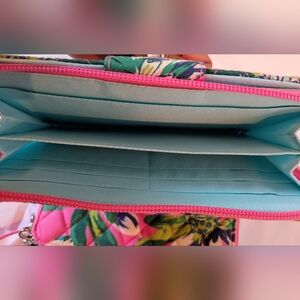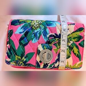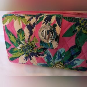 NWOT Vera Bradley Pink and Green Tropical Floral Turnkey Wallet.