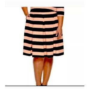 Ashley Nell Tipton Pleated Stripped Skirt Plus 2X Pink Black Knee Length Pockets