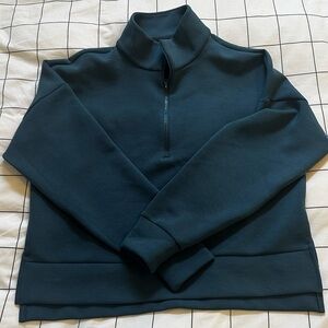 Stylish teal quarter-zip sweatshirt. Comfortable and versatile. Perfect for casual wear. Excellent condition. 25” across.