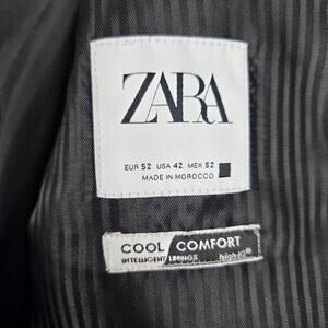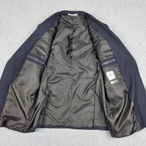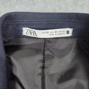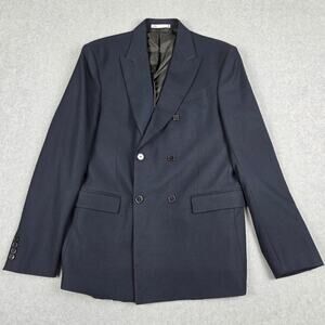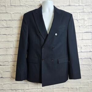 Zara Mens 42 Double Breasted Blazer Navy Blue Suit Jacket Sport Coat